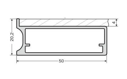 Wide profile for aluminum doors. Used with opaque (painted) glass with polished edges only. Can be combined with Z-20 profile (1 edge)