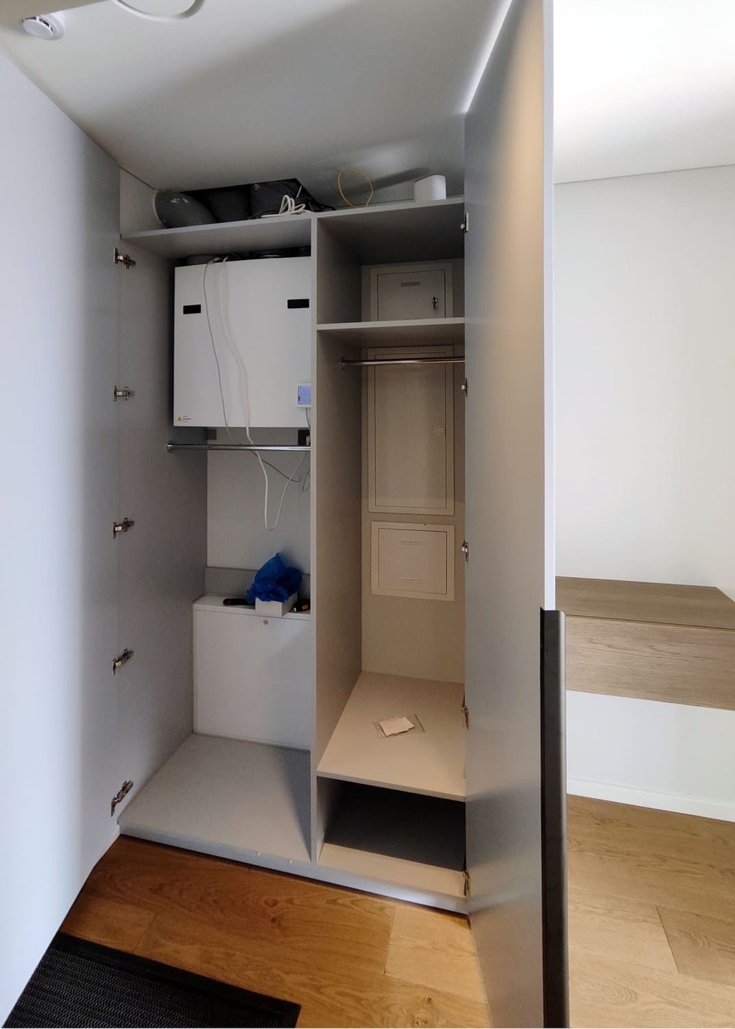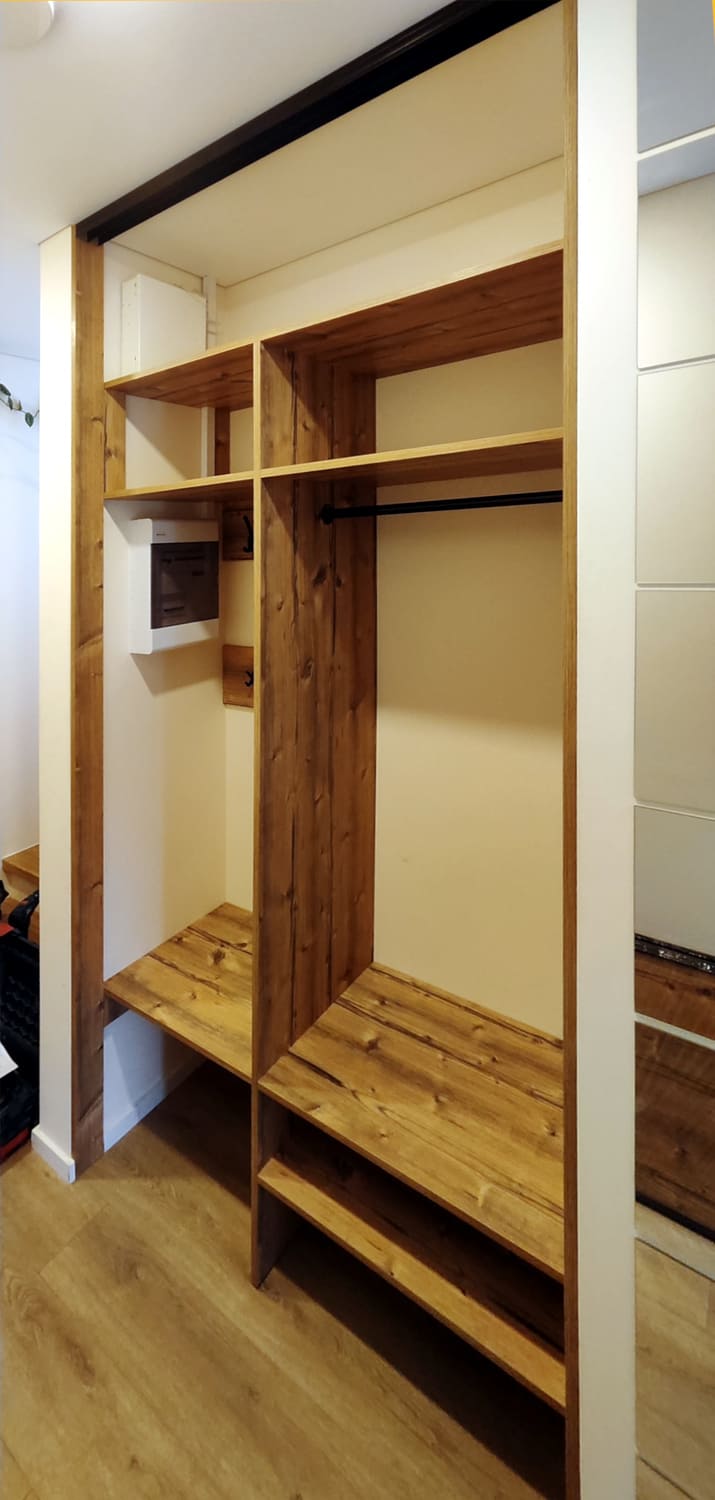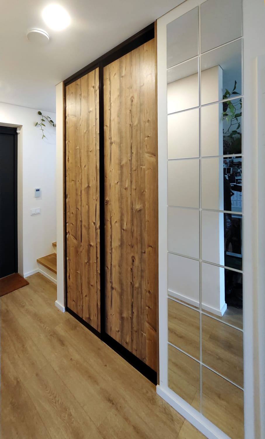 Hallway interior strongly depends on furniture design ideas. A cabinet with mirror doors will visually enlarge a hallway, and sliding doors will bring some comfortable functionality. Hallway hard furniture sets are made using laminated chipboard. Free of charge delivery and installation in Kaunas for orders of €500 and more.