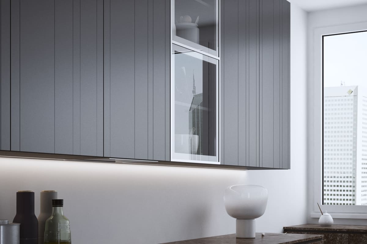 Didesnių gabaritų durelėms yra galimybė montuoti pertvarinį profilį (tik anoduoto aliuminio spalvos):